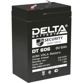 Батарея DELTA серия DT, DT 606, напряжение 6В, емкость 6Ач (разряд 20 часов), макс. ток разряда (5 сек.) 90А, макс. ток заряда 1.8А, свинцово-кислотная типа AGM, клеммы F1, ДxШxВ 70х48х101мм., вес 0.81кг., срок службы 5 лет. / Battery DELTA series DT, DT