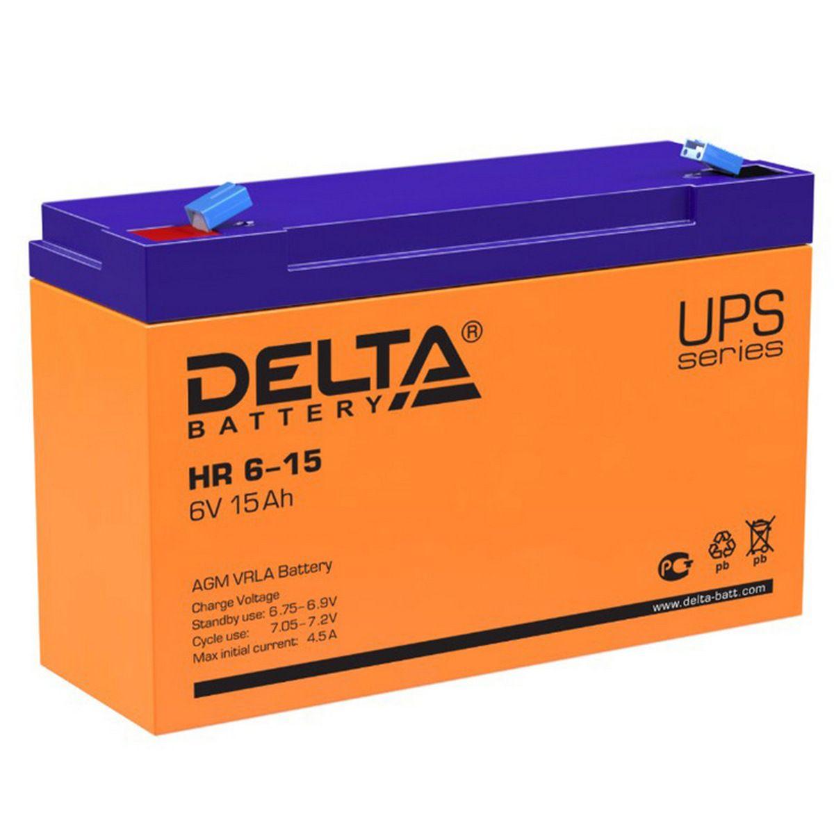 Аккумуляторная батарея Delta HR 6-15 6В / 15Ач, клемма F1 (151х50х94мм (100мм); 1,95кг; Срок службы 8лет; Гарантия 1г)