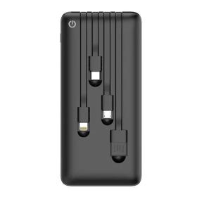 Gembird Портативный аккумулятор, 10000мАч, 2A, 4 встр.кабеля, черный (GPB-10C)