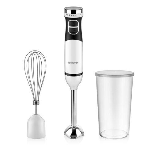 Блендер погружной BRAYER BR1243, 800 Вт, 2 скорости, 2 насадки, стакан, белый
