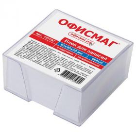Блок для записей ОФИСМАГ в подставке прозрачной, куб 9х9х5 см, белый, белизна 95-98%, 127797