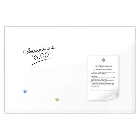 Доска магнитно-маркерная стеклянная 60х90 см, 3 магнита, БЕЛАЯ, BRAUBERG, 236747