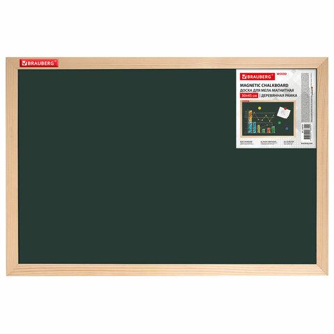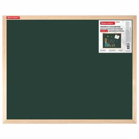 Доска для мела магнитная 45х60 см, зеленая, деревянная рамка, BRAUBERG "Wood", 238798