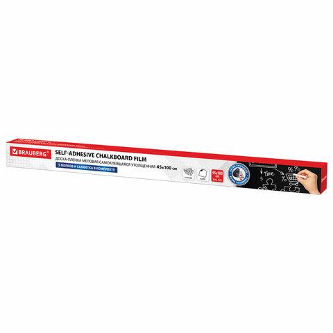 Доска-пленка меловая самоклеящаяся в рулоне, ЧЕРНАЯ, 45х100 см, 5 мелков и салфетка, BRAUBERG, 237837