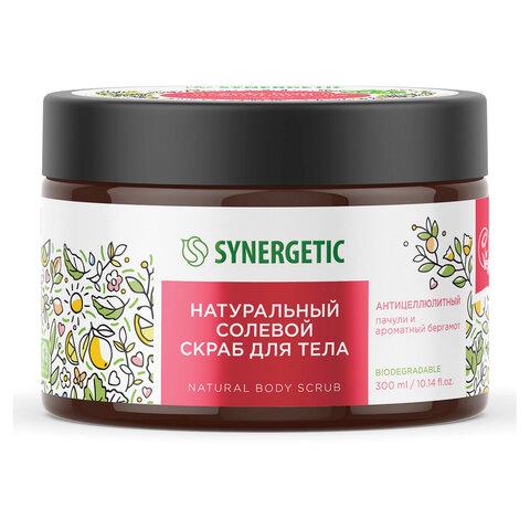 Скраб для тела 300 мл, SYNERGETIC "Пачули и ароматный бергамот", антицеллюлитный, солевой, 800002