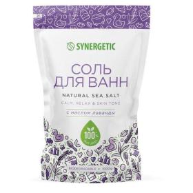 Соль для ванн 1 кг, SYNERGETIC "Детокс и расслабление", морская с лавандой, натуральная, 300014