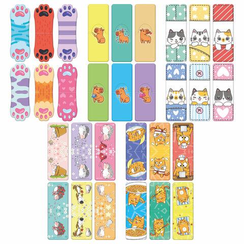 Закладки для книг МАГНИТНЫЕ, "АССОРТИ 5 ДИЗАЙНОВ ЗВЕРЯТА", 6 штук, 35x25 мм, FUNSTER (ФАНСТЕР), 116651
