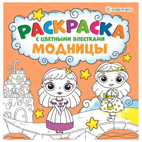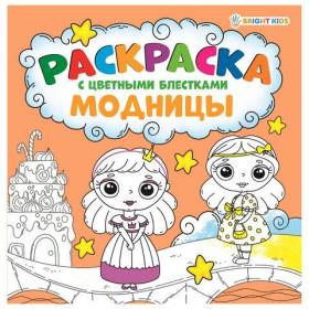 Книжка-раскраска МОДНИЦЫ, С ЦВЕТНЫМИ БЛЁСТКАМИ, 215х215 мм, 24 страницы, цветной внутренний блок, BK, Р-6521