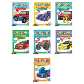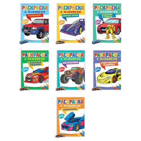 Раскраска "Машины" с инерционной машинкой 7 см в ПОДАРОК! 210х300 мм, 16 страниц, АССОРТИ, Проф-Пресс