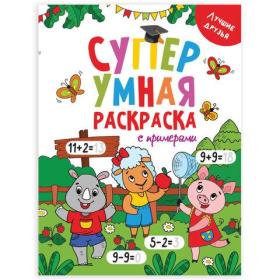 Книжка-раскраска Супер УМНАЯ с примерами ЛУЧШИЕ ДРУЗЬЯ, 200х280 мм, 64 стр., ПП, 1758-5