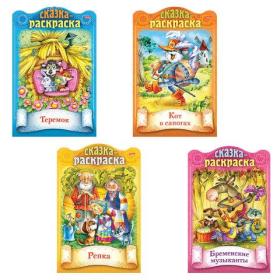 Книжка-раскраска "ПОПУЛЯРНЫЕ СЮЖЕТЫ" АССОРТИ, 214х290 мм, 16 страниц, "УМКА"
