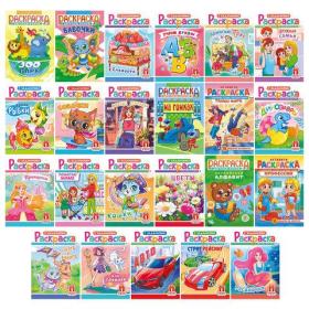 Книжка-раскраска А4 эконом ДЛЯ МАЛЫШЕЙ, АССОРТИ дизайнов, 195х276 мм, 16 стр., ПП