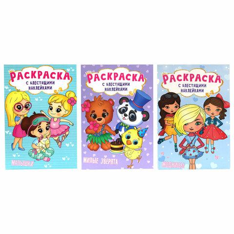 Книжка – раскраска с блестящими наклейками, ассорти, 16 стр., 195х276 мм, ПП