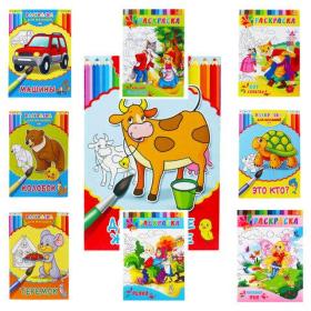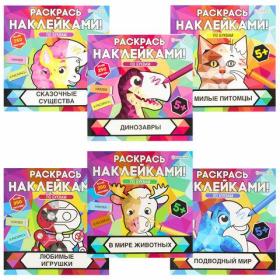 Книжка-раскраска С НАКЛЕЙКАМИ АССОРТИ, 210х297 мм, 12 стр., ПП