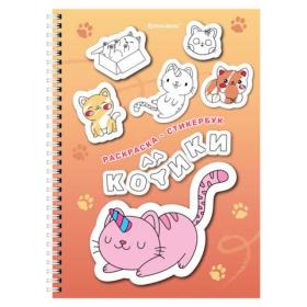 Стикербук РАСКРАСЬ И НАКЛЕЙ А5, 16 листов, 120 стикеров, на гребне, BRAUBERG, "Котики", 666048