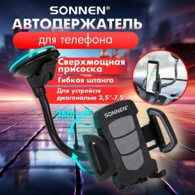 Держатель для телефона в авто на стекло SONNEN, зажим 50-100 мм, вращение 360°, 354921