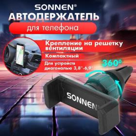 Держатель для телефона в авто на решетку вентиляции SONNEN, зажим до 85 мм, вращение 360°, 354922