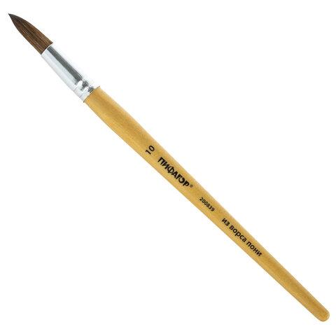 Кисть ПИФАГОР, ПОНИ, круглая, № 10, деревянная лакированная ручка, колпачок, пакет с подвесом, 200839