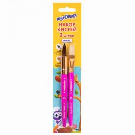 Кисти ЮНЛАНДИЯ, набор 2 шт. (ЩЕТИНА: круглые № 10, 12), блистер с европодвесом, 200884