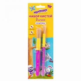 Кисти ЮНЛАНДИЯ, набор 2 шт. (ПОНИ: круглая № 10; ЩЕТИНА: плоская № 12), блистер с европодвесом, 200883