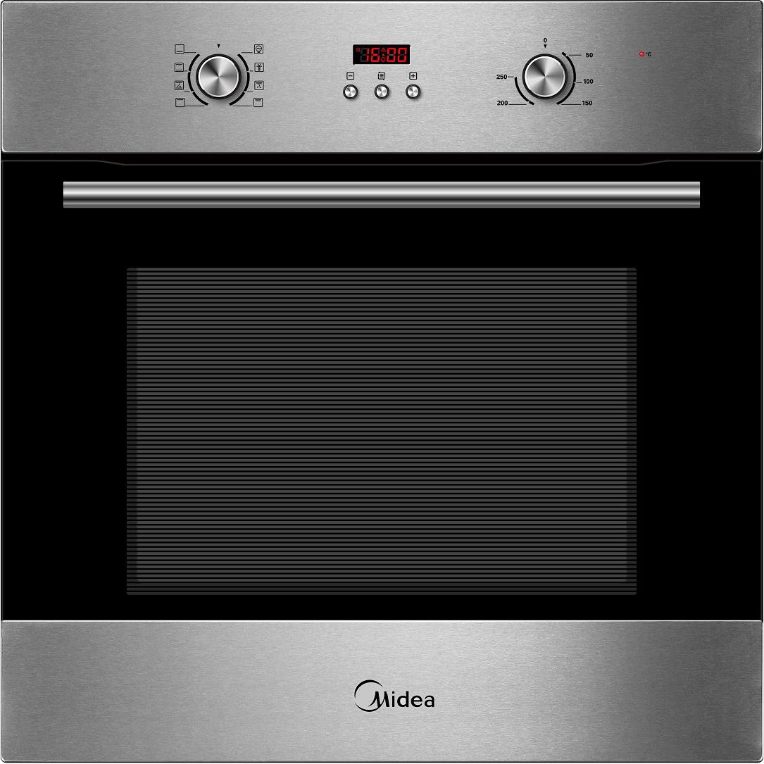 Духовой шкаф Midea / MDK / Электрический мультифункциональный духовой шкаф, 7 режимов + освещение, электронный программатор + цифровой LED дисплей, утапливаемые переключатели, корпусные направляющие для противней, 3 стекла, объем 65 литров, цвет - нержавею