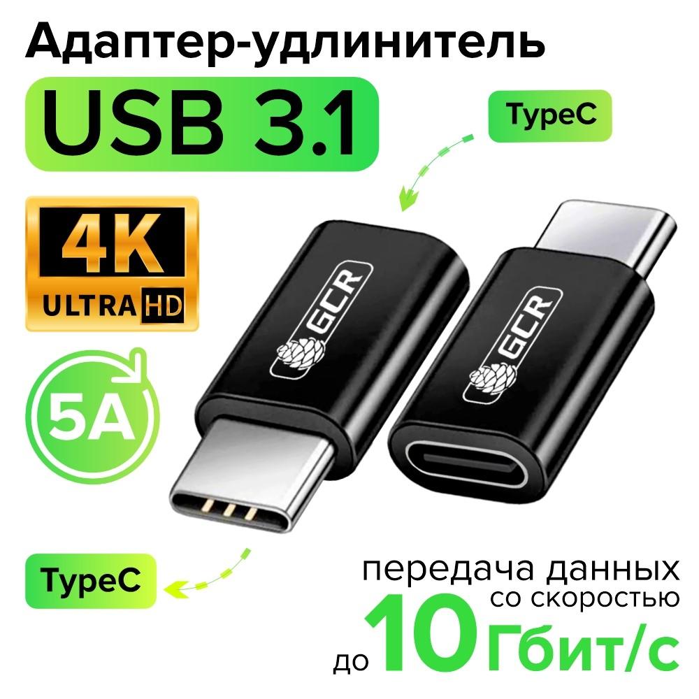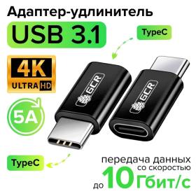 GCR Переходник USB 3.1 (USB 3.2 Gen 2) TypeC, M / F, черный, 100W / 5А, 10 Гбит / с, 4K, AL корпус, GCR-54943
