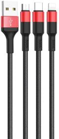 Кабель Hoco X26 Xpress one 80282 USB (m)-Lightning (m) / USB Type-C (m) / micro USB (m) 1м черный / красный