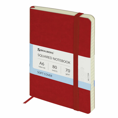 Блокнот МАЛЫЙ ФОРМАТ (100x150 мм) А6, BRAUBERG "Metropolis Ultra", под кожу, 80 л., клетка, красный, 111026