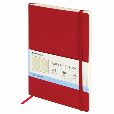 Блокнот А5 (148x218 мм), BRAUBERG "Metropolis Ultra", под кожу, 80 л., резинка, клетка, красный, 111018