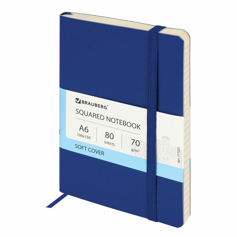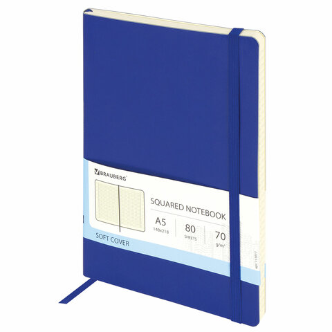 Блокнот А5 (148x218 мм), BRAUBERG "Metropolis Ultra", под кожу, 80 л., резинка, клетка, синий, 111017
