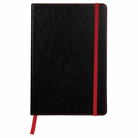 Блокнот А5 (148x218 мм), BRAUBERG "Office", под кожу, 80 л., резинка, клетка, черный, 111027