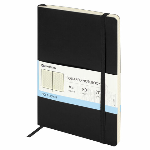 Блокнот А5 (148x218 мм), BRAUBERG "Metropolis Ultra", под кожу, 80 л., резинка, клетка, черный, 111021