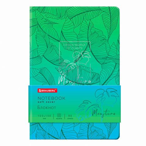 Блокнот МАЛЫЙ ФОРМАТ (100х150 мм) А6, BRAUBERG VISTA "Monstera", под кожу, гибкий, тиснение фольга, 80 л., 112093