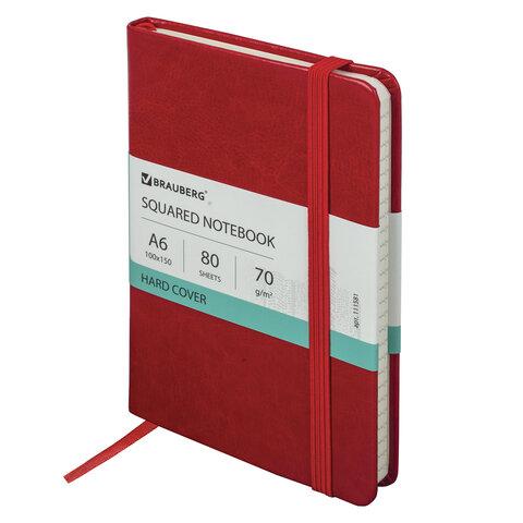 Блокнот А5 (148x218 мм), BRAUBERG "Metropolis Special", под кожу, 80 л., резинка, клетка, красный, 111575