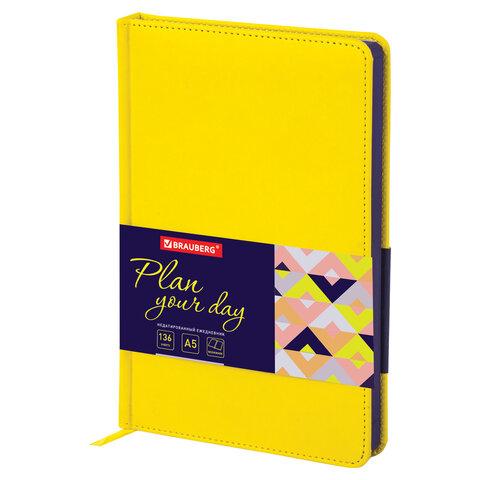 Ежедневник недатированный А5 138х213 мм BRAUBERG "Rainbow" под кожу, 136 л., желтый, 111670
