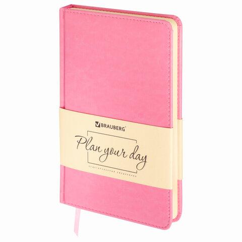 Ежедневник недатированный А5 138х213 мм BRAUBERG "Imperial" под кожу, 160 л., розовый, 111859