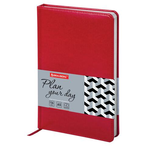 Ежедневник BRAUBERG Rainbow недатированный A5 272стр. 136лист. в линейку белые страницы красный