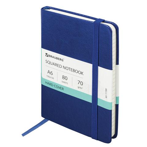 Блокнот А5 (148x218 мм), BRAUBERG "Metropolis", балакрон, 80 л., резинка, клетка, синий, 111582