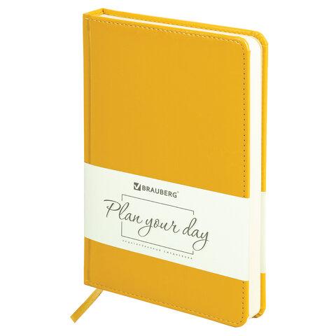Ежедневник недатированный А5 138х213 мм BRAUBERG "Imperial" под кожу, 160 л., желтый, 111858