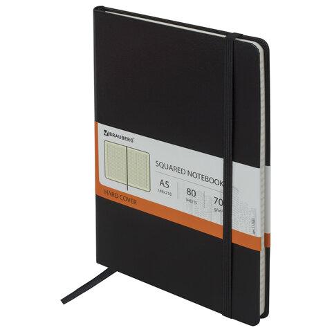 Блокнот А5 (148x218 мм), BRAUBERG "Metropolis", балакрон, 80 л., резинка, клетка, черный, 111585