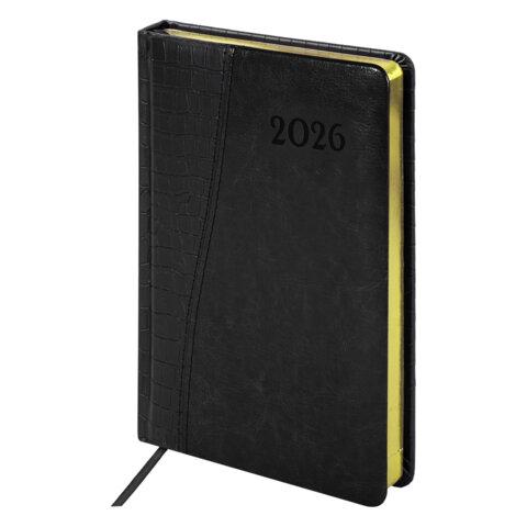 Ежедневник датированный 2026, А5, 138x213 мм, BRAUBERG "Cayman", под кожу, черный, 117047