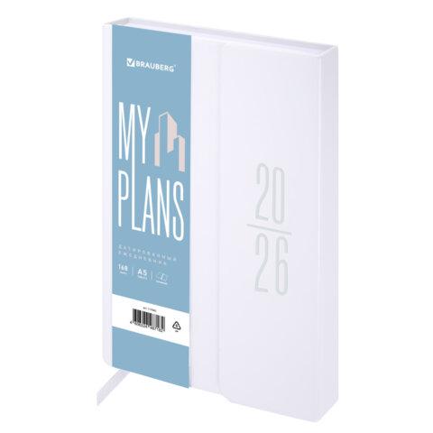 Ежедневник датированный 2026, А5, 138x213 мм, BRAUBERG "Towny", под кожу, клапан, белый, 117042