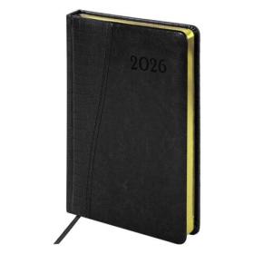 Ежедневник датированный 2026, А5, 138x213 мм, BRAUBERG "Towny", под кожу, клапан, черный, 117039