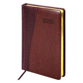 Ежедневник датированный 2026, А5, 138x213 мм, BRAUBERG "Cayman", под кожу, бордовый / коричневый, 117044