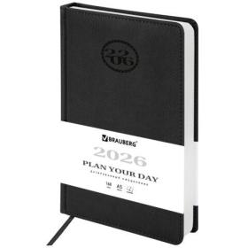 Планинг датированный 2026 305х140 мм BRAUBERG "Comodo", под кожу, черный, 117223