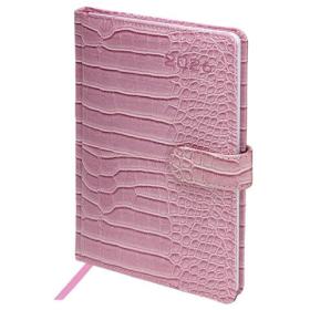 Еженедельник датированный 2026 МАЛЫЙ ФОРМАТ 105х160 мм, А6, BRAUBERG "Imprint", тиснение, розовый, 117213