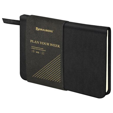 Еженедельник недатированный А5 145х215 мм BRAUBERG "Status", под кожу, 64 л., черный, 113370