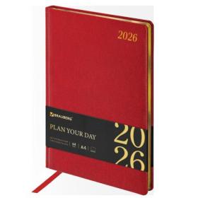 Еженедельник датированный 2026, БОЛЬШОЙ ФОРМАТ 210х297 мм, А4, BRAUBERG "Iguana", под кожу, красный, 117154
