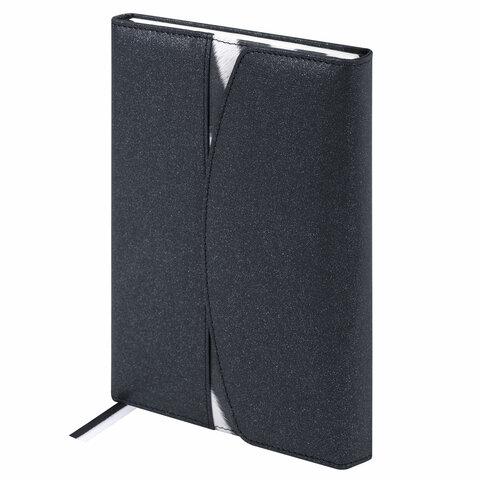 Ежедневник недатированный А5 138х213 мм BRAUBERG "Nebula", под кожу, застежка, 160 л., черный, 116235