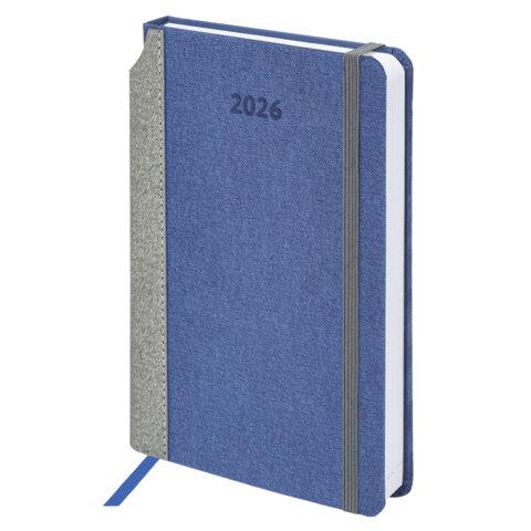 Ежедневник датированный 2026, А5, 138х213 мм, BRAUBERG "Plain", под кожу, резинка, держатель для ручки, синий, 117506